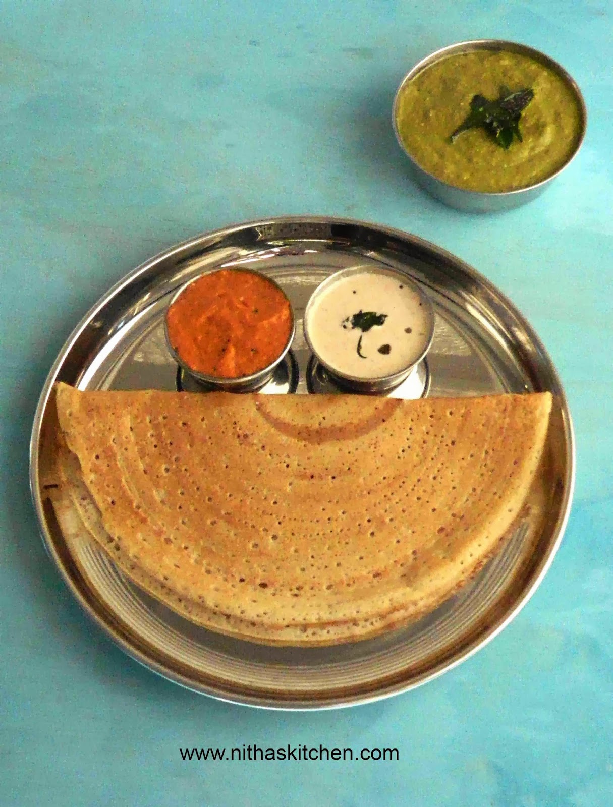 healthy dosa with delicious chutneys.